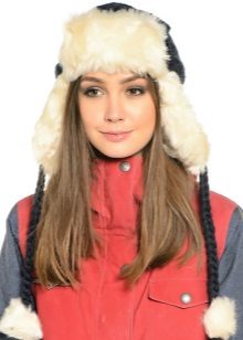 A simple and at the same time unusual hat made of dark fleece is incredibly suitable for young and stylish girls. A model without lapels, with a tight fit on the head, will decorate girls with long hair. It can be worn with brightly colored down jackets, jackets, and a fur coat of any cut. This model is universal and suitable for both sports style and other style decisions.