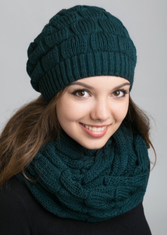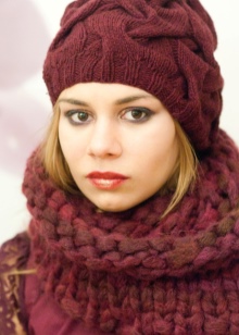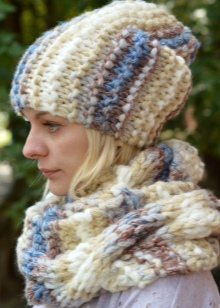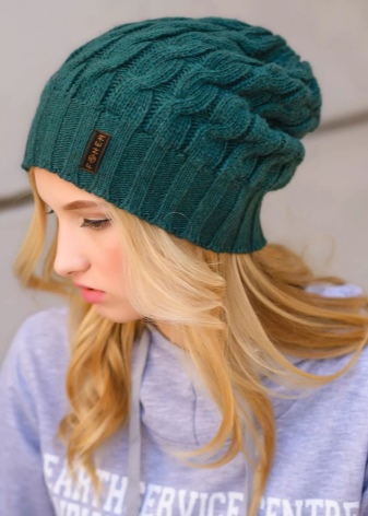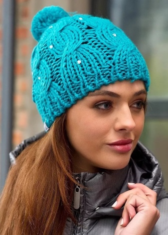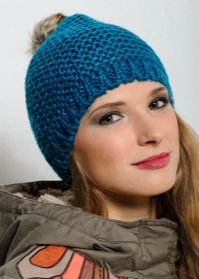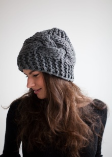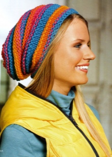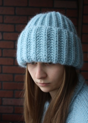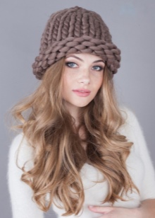 The last couple of seasons fashionable hats of thick knitting are made using knitting needles number 8-12. As a rule, preference is given to garter stitching and facial smoothness, because it is problematic to make a pattern with such voluminous threads.