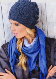 Honeycombs or pearls in both large and small versions are an excellent choice for knitting warm hats and scarves. The product comes out very dense, and perfectly retains heat even in the most severe frost. In this technique, you can make a product with a transverse pattern, for example, stripes, a diagonal pattern, or make a beautiful wave that will transform the appearance and style of any, even the simplest, hat.