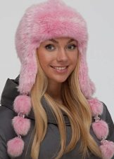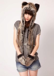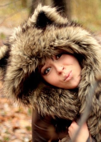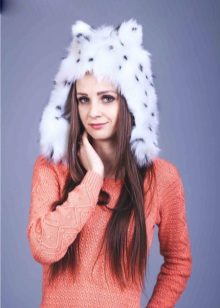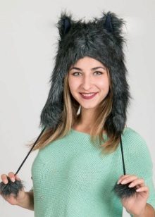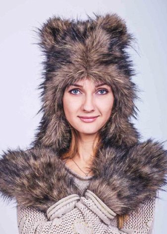 The lineup is not complete without cool decorative products with ears different animals. Product faux fur, densely covering the head, and also having a decor in the form of cat, dog or bear ears, looks very stylish and cute. Sometimes this hat comes with a fur scarf and mittens made in the form of paws.