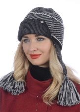 Knitted hats with braids are popular, as well as products with animal print. Tiger and leopard colors go well with black and dark brown outerwear. The image will turn out, though strict, but with a touch of audacity and arrogance.