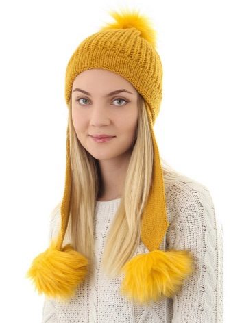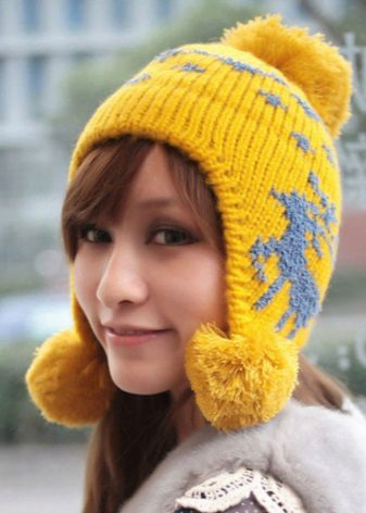 For several consecutive seasons, the leading positions have not been left with products with pompons. The fluffy round decor, located on the top of the product, can be made from natural or artificial fur, or from the same yarn as the product itself.