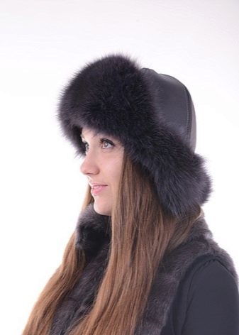Dark hats from regular and tanned leather, as well as suede, with light fur trim are popular. The most popular combinations look something like this: black + white, dark brown + ivory, dark blue + light gray.