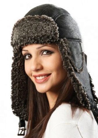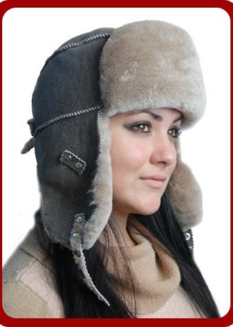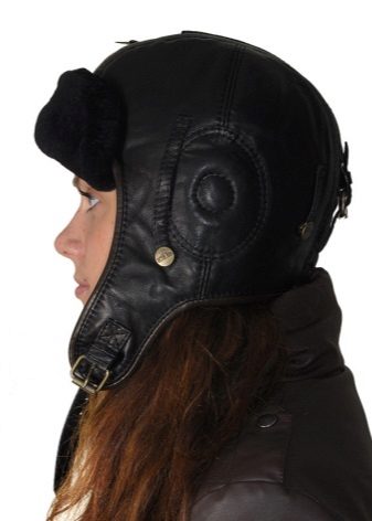 Hats with earflaps from regular or tanned leather look great, which often have internal fur trim. Such a hat is best suited for severe cold, as it protects against frost. The same can be said about suede products.