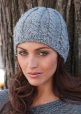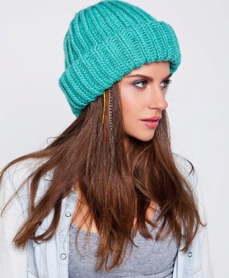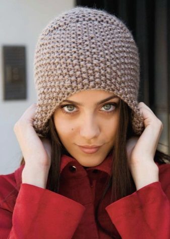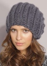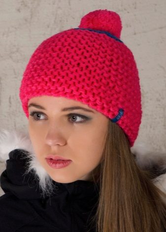 Alternatively, the cap can be made denser garter stitchthat looks the same on both sides. In this case, all the loops, regardless of the row, need to be knit facial. It should be remembered that this pattern stretches very well, which must be taken into account when calculating the loops. This picture looks better from thick yarn.