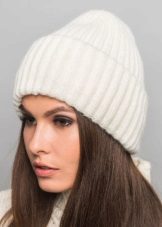 If you want to make a warmer thing, use a double elastic band. Please note that in this case you will need twice as much yarn, as the hat will turn out two-layer. The first row of this pattern fits simply: one loop is front, the other is purl. The main pattern starts from the second row: one loop is made front, and the next is removed, and the thread must pass in front of the canvas. All subsequent rows to the very end are knitted in the same way.