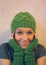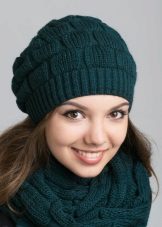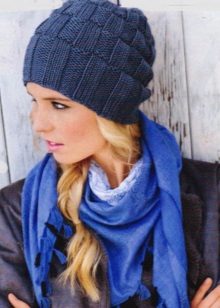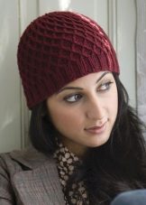 It will not be difficult for a beginner needlewoman to make various geometric patterns based on a specific arrangement of front and back loops. This is a checkerboard pattern., which is an alternating square, which can be of different sizes: 2x3, 3x3, 4x4, etc. (but do not make them too large). So, to knit a 4x4 chess, in the first row you knit 4 front and 4 wrong loops one by one, knit the next three rows according to the pattern. In the fifth row, in place of the facial loops, the wrong ones are knitted and vice versa. The hat with this pattern will turn out to be rather dense, it will not be wrapped even without elastic at the edge.