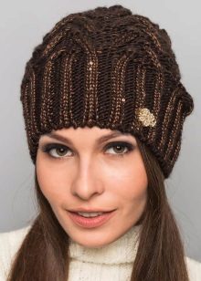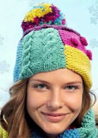 The color of the yarn also matters for the selection of the cap pattern. So, Aranian patterns (intricate interweaving of braids, plaits, braids) look more advantageous on a light canvas. But from melange threads it is better to make a hat with an ordinary elastic band, hosiery or garter stitch.