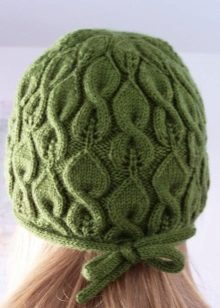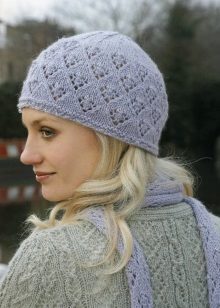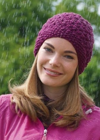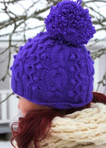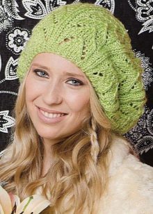Each specific pattern is designed for a specific yarn. For example, thin openwork hats are knitted from thin cotton threads ("iris", "lily", "violet"). Smooth yarn on a woolen basis is suitable for voluminous braids, and fluffy mohair and angora do not need elaborate patterns - they look great, connected by simple stocking smoothness. The required thickness of the knitting needles also depends on the texture of the yarn.