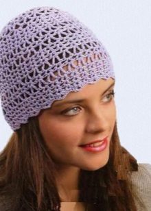 Many craftswomen are very fond of lace patterns. These are various waves, snakes, nets, “peacock tail”, openwork leaves, rhombuses, Christmas trees, etc. The basis of these drawings is the use of yarn. These patterns are performed in simple patterns. As a rule, they are used to create light summer hats. Many small holes provide good ventilation of caps and panama hats.