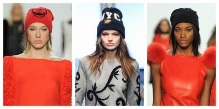 Sports hats are very fashionable this fall. Such caps are combined with sports-style clothes, as well as suitable for casual. The only negative is the restriction in the choice of hairstyles, as they fit your head. Accordingly, it is either a low tail or loose hair. It makes no sense to put hair under such a hat, as everything will go bad. These hats can be plain or with a fashionable print. Caps can be decorated with beads, sequins or embroidery. Such fashionable hats are presented in the collections of Gucci, Alexander Wang, Michael Kors Collection.