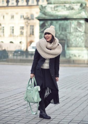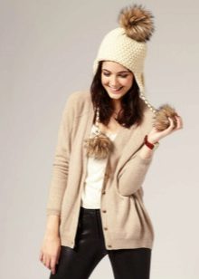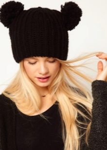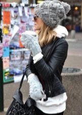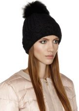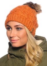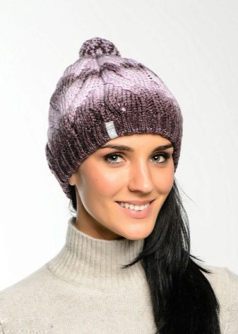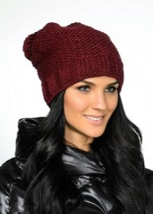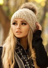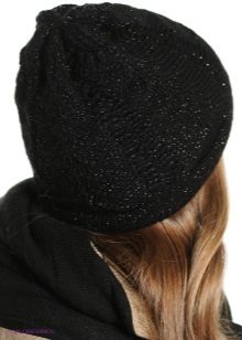 - Yarn - knitted hats, perhaps one of the most common varieties that allow you to realize the most diverse and fantastic ideas (traditional wool or half-wool, mohair with silk, boucle and grass, sequin yarn, calm plain or brain melting that explodes the brain). Knitted hats: hat, large knit, knitted bomber hat, lapel hat, hats with pompons of various sizes, turban, beanie, pipe hat, scarf hat, hat hat, hat with patterns (lace, arana, ornament).