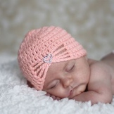 Hats with this decor look great not only on newborn babies, but also on girls 1-3 years old and a little older.