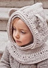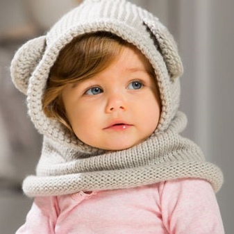 A helmet cap has been widely used recently. This model combines two garments at once: a hat and a shirt front to protect the child’s chest and neck, forehead and cheeks. A helmet is a great alternative to a warm scarf.