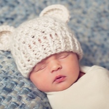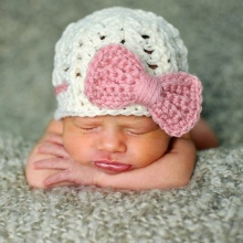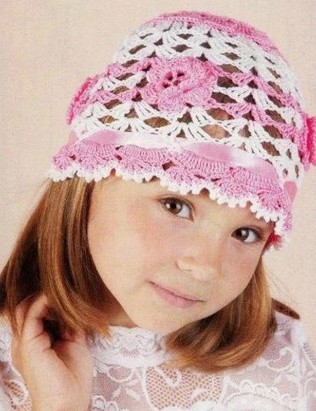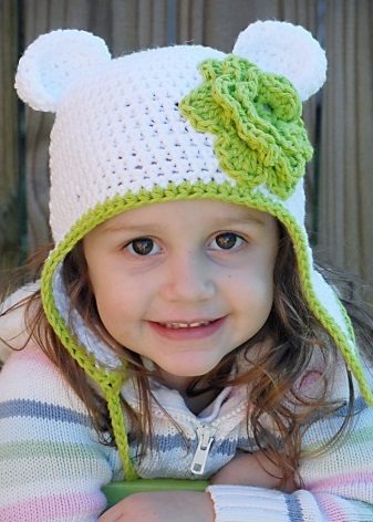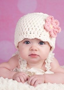 Most often, the model for a newborn girl is a cap that fits tightly on her head. Depending on the season, the cap can cover the forehead, cheeks, and have long ears.