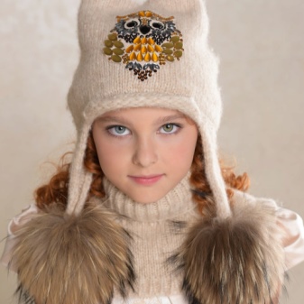 No less relevant are the original models: hats with decorative cat ears or ears below the shoulders, caps decorated with braids, hat caps, etc. Such hats can be found on a girl of 11 years old, and on older fashionistas. Adolescents 12-14 years old also prefer unusual, original models.