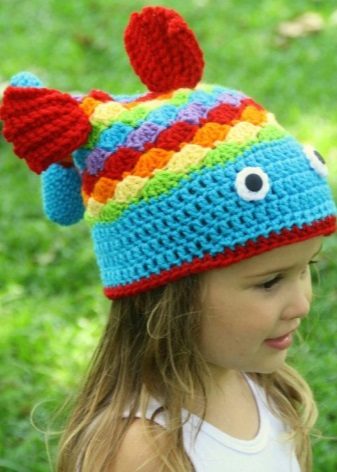 Another option: "baby" hats. Such models are decorated with animal faces, fairy-tale or cartoon characters, performed in bright colors and richly decorated.