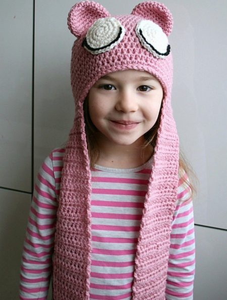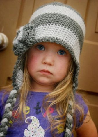 Older children, most often teenagers, may like a hat with very long ears. Their length can reach the waist, and even to the knee! Typically, such ears are decorated with pompons, tassels, and decorated with beads. Ears can hang freely or be used as a scarf.