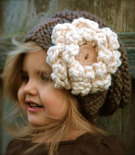 Another area is elegant models. Such hats do not seem to differ from adult hats. It can be knitted berets, caps, hoods, snoods. Such hats are decorated with concise decor or dispense with it.