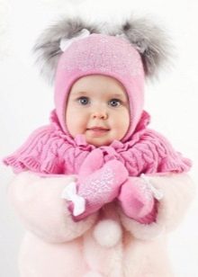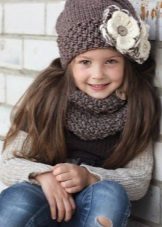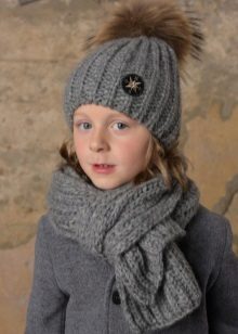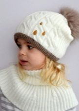 Hats complete with a scarf or snood are widely recognized not only in adults, but also in children. This is not only convenient, but also allows you to generally complement the image of the child in one style and color scheme.