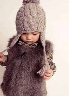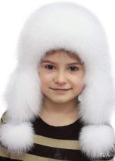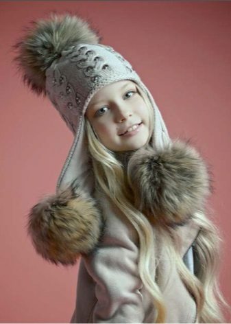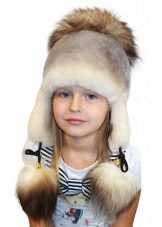 Fur hats for girls always remain relevant. Popular furs for making children's hats are rabbit, muton, arctic fox, mink, and sheepskin. A classic model is earflaps with a lapel on the forehead from any fur, ears with ties, which allows you to protect the face of the child from the cold. An insulated lining of soft and practical fabric is provided inside the cap. Hats with earflaps from a polar fox, foxes look spectacular and comfortable.