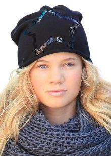 Teenage hats for winter are distinguished by a more restrained decor, but knitted jewelry (laces, flowers, leaves, ears, etc.), decorative buttons, buttons, rhinestones, sequins, stones, beads are also used.