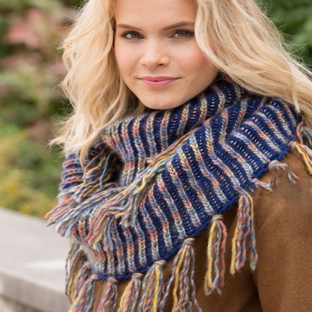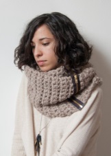 In the offseason, the model can be worn with a simple ring. Snuds are distinguished by a beautiful pattern that combines English gum with fantasy braids and weaves. Often such a model is decorated with a variety of fringes.