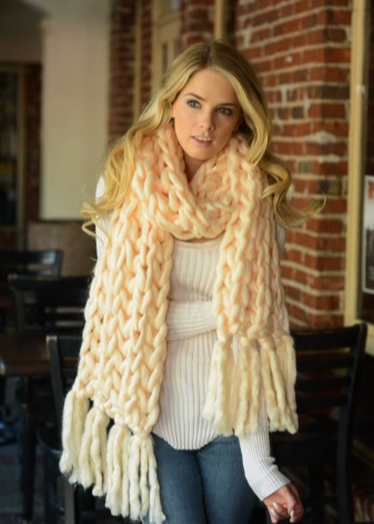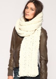The combination of loops should be such that the finished thing has a relief and elasticity. Some models, in addition to the front and back loops, are made with the use of yarn for making lace. Adding large braids and all kinds of weaves gives the scarf the right amount. This mix is extraordinary and attracts attention with the novelty and uniqueness of the image.