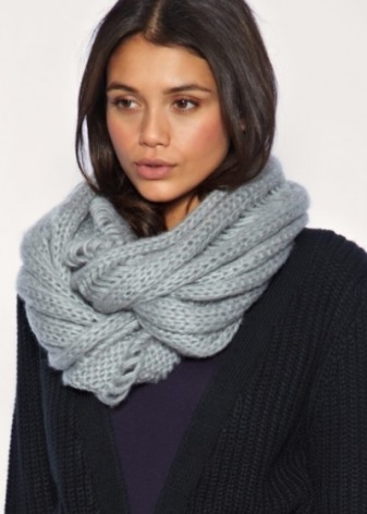 One of the leading models of a scarf is an English gum scarf snood. It has other names: an endless scarf, a scarf-clamp, a scarf-loop. It differs from the classic template in that it represents a closed ring in shape.