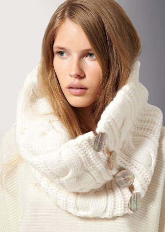 The scarf-collar fits snugly to the neck, keeping warm and protecting from the weather. The accessory should be selected to the main color of clothes in accordance with the type of figure, the color of hair and skin. With a competent approach to the choice, the final result will be harmonious and expressive.