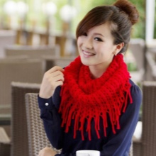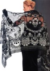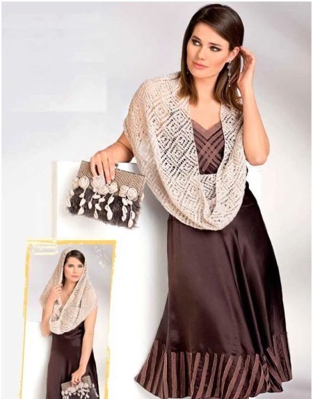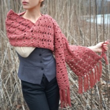 The edges of the openwork scarf are often decorated with fringe, which can be staggered. Some elegant models adorn beads, bright rhinestones, bugles.