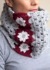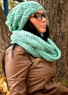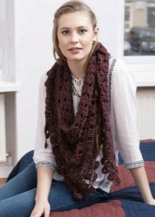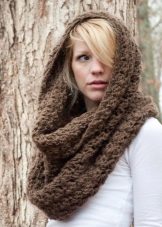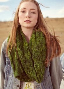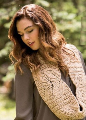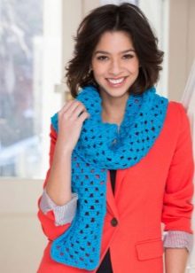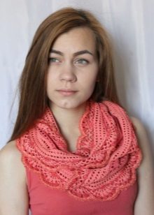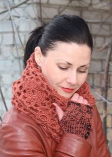 One of the most popular models is a stylish scarf-snood made with an openwork pattern. This is a great alternative to a set of hats and a regular scarf.