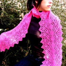 Often when knitting a scarf, relief braids, plaits and cones are added to the openwork pattern. When considering the composition of ornaments combined from various patterns, such a regularity is often observed: the openwork parts of the canvas are successively replaced by either columns of front or back loops or braids (as an option, by bundles).