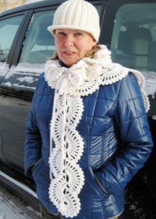 A long openwork accessory that you can tie around the neck several times is in demand both in the cold season and during the off-season. Warm winter options are knitted from a certain yarn and more often include Aran patterns in the drawing. Note that this season a long openwork scarf with ruffles is popular.
