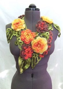 The classic elements of Irish lace include different types of leaves, a bunch of grapes and a rose with voluminous petals in three rows. The technique of execution includes knitting individual motifs, laying them out on a sketch or pattern and at the end combining them into an integral composition with a lattice.