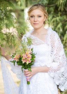 Speaking of openwork accessories, it is necessary to mention such an important thing for Orthodox women as a wedding cape. This thing is a key component of the image of the bride during the wedding ceremony, made by delicate delicate lace pattern, will suit her more than a scarf or scarf. And if the girl has a dress with bare shoulders, then the best option would be a lace stole. By the way, later this thing can be worn on christening.