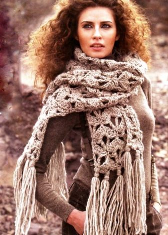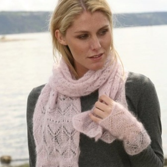 Warm variations of openwork scarves are made, as a rule, of thick wool and acrylic, angora and mohair.