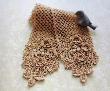The second option is more suitable for experienced needlewomen - the scarf is made up of individual lace motifs. This is a very painstaking job.