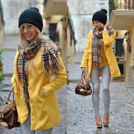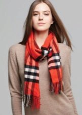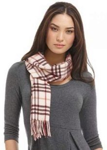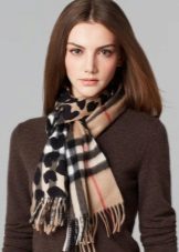 There is no universal recipe for color combinations, as brand scarfs still have a wide variety of shades. However, you should be very careful to make a set with a plaid scarf or scarf with a floral pattern, because such products immediately become the most active in the bow and do not tolerate competition. With care, you can combine them with a jacket or jacket in an unobtrusive strip. All other prints in clothing should be avoided.