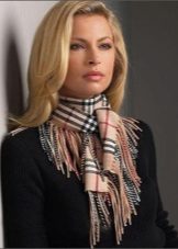 - If desired, you can make a scarf part of the costume.To do this, it is necessary to fill it under a jacket, jacket or coat, so the scarf will be visible in the section and on the neck. And the stole can be tucked under the jacket strap.