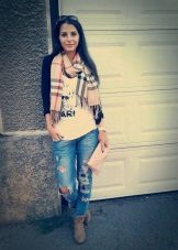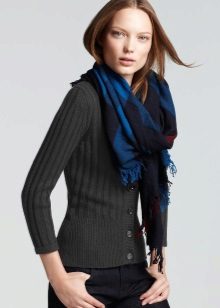 In less cool weather, you can also wear a scarf with jackets, cardigans, sweaters, and wear a tippet over them and gird it with a thin strap. It is believed that the most harmonious warm scarves look with covered clothes, for example, long pants and jeans. However, modern fashion allows you to combine wide scarves with sweaters and short shorts. Much depends on the style in which the image is selected.