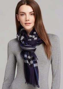 Often a scarf can be double-sided. On the front side there is a cell in all possible combinations, and on the back one, most often, a contrasting color. For example, you can find models with a green and white stripe and a blue inside.