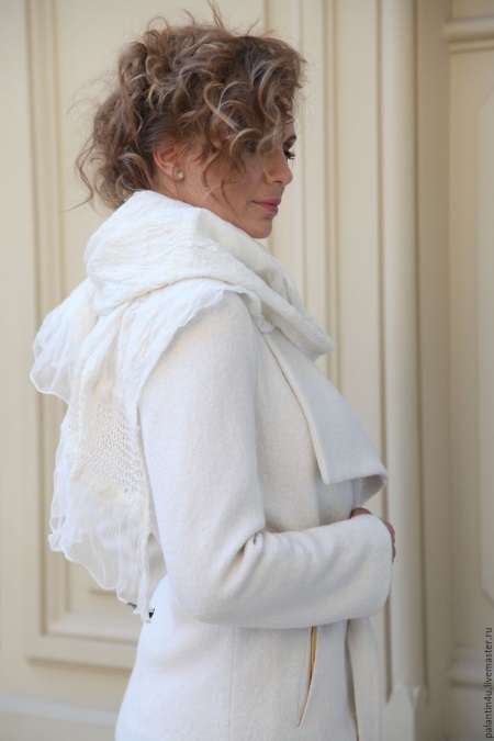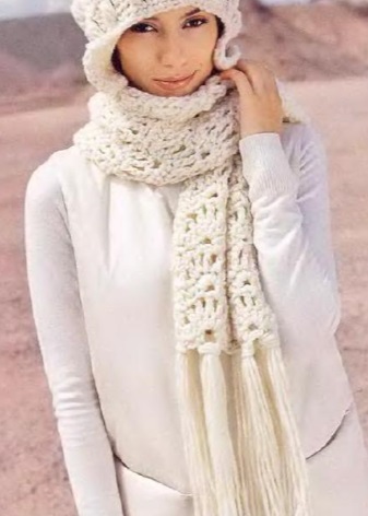 - The white scarf, which was used to create fleece, can safely boast of its warmth and softness (the fabric is perfect for making not only scarves, but also hats).