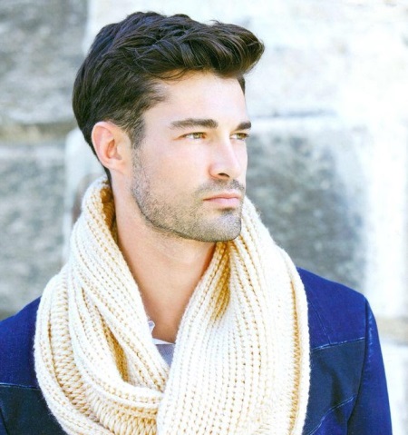 A scarf made of any material, made in classic white, is perfect not only for women, but also for men who love business style of clothing, as well as warm sweaters and turtlenecks. Solid and strict models of scarves for men easily create a serious and brutal look in combination with a straight black or gray coat of various materials.