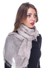- A gray and beige scarf is the perfect solution for creating a stylish look in an office style. It belongs to cold tones, so it is rarely chosen for every day, and only in tandem with clothes in contrasting tones.
