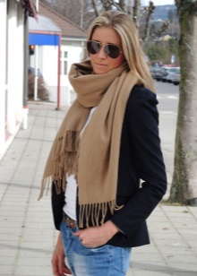 A beige scarf can be harmoniously combined with different elements of the wardrobe, but you should be careful with the choice, because this accessory looks ridiculous in tandem with bright colors.