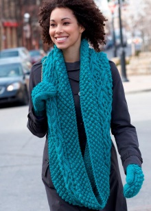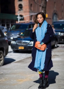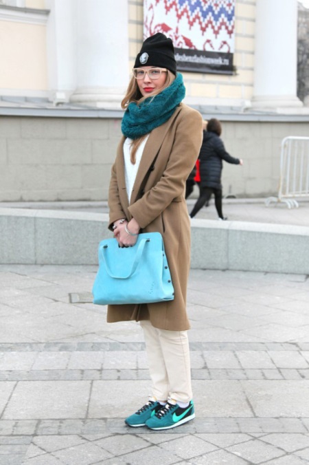Recently, it has become fashionable to combine bright coat models with knitted scarves in turquoise color. With this way you have to constantly be in the spotlight.