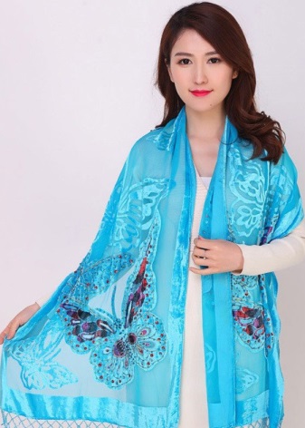Accessories also feature trendy trends. This also applies to turquoise scarves. Since such an element of the female wardrobe is in no hurry to go out of fashion, the designers are actively experimenting, introducing new variations to the world.