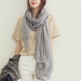 The basic thing is a large gray scarf. Looks great with any clothes, whether it be a coat with a stand-up collar or a leather jacket. Despite his modesty, he looks noble and elegant.