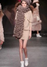 What you should not wear a large scarf is with clothes that have a voluminous fur collar. A scarf with a collar will go into dissonance, reducing the whole effect of volume to nothing.